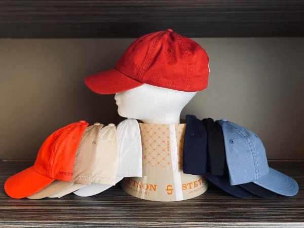 Verschillende kleuren. Luchtige katoenen pet, aan de achterkant geopend en door clipsluiting op maat verstelbaar.