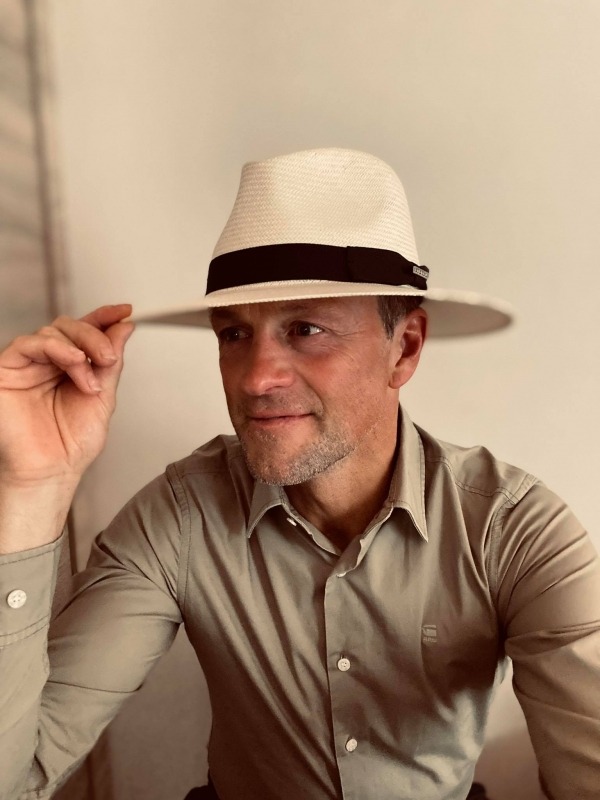 Exclusief met de hand gevlochten strohoed. Ook voor dames.