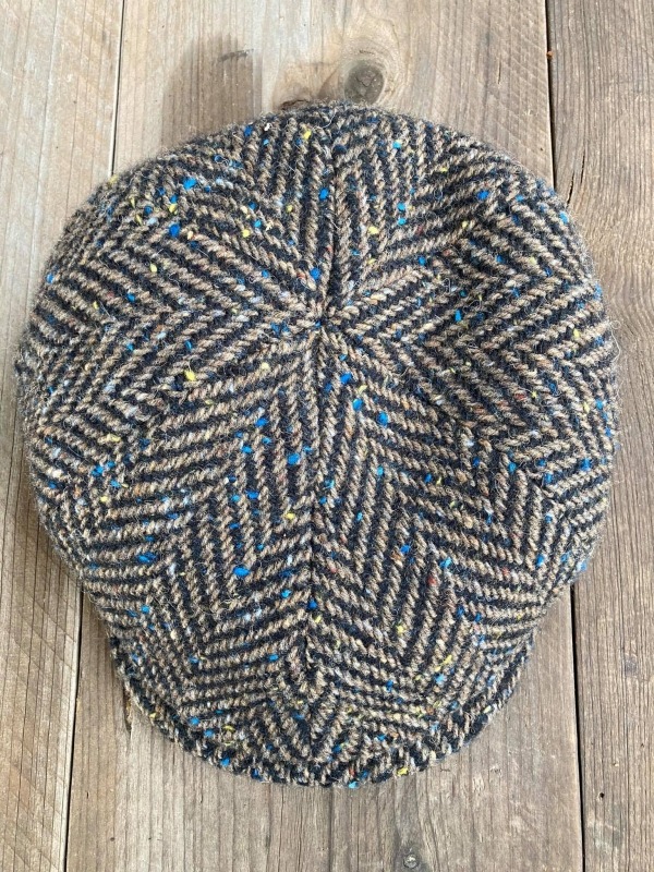 Visgraatmotief in een wollen stof (Donegal Tweed).